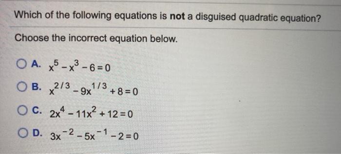 Which of the Following Is Not a Disguised Quadratic Equation